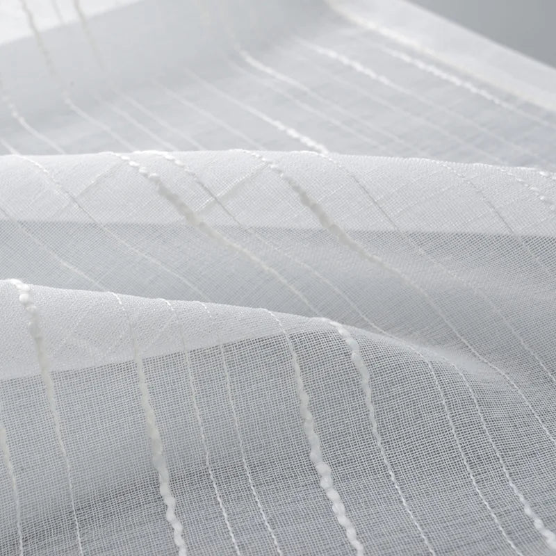 Ce rideau blanc en 100% polyester garde sa forme. Vous avez un tissu durable.