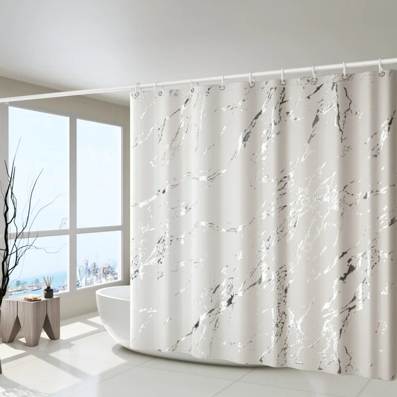 Ce rideau de douche en textile imperméable avec motif marbre blanc retient l'eau dans la zone de douche. Vous maintenez votre sol sec.